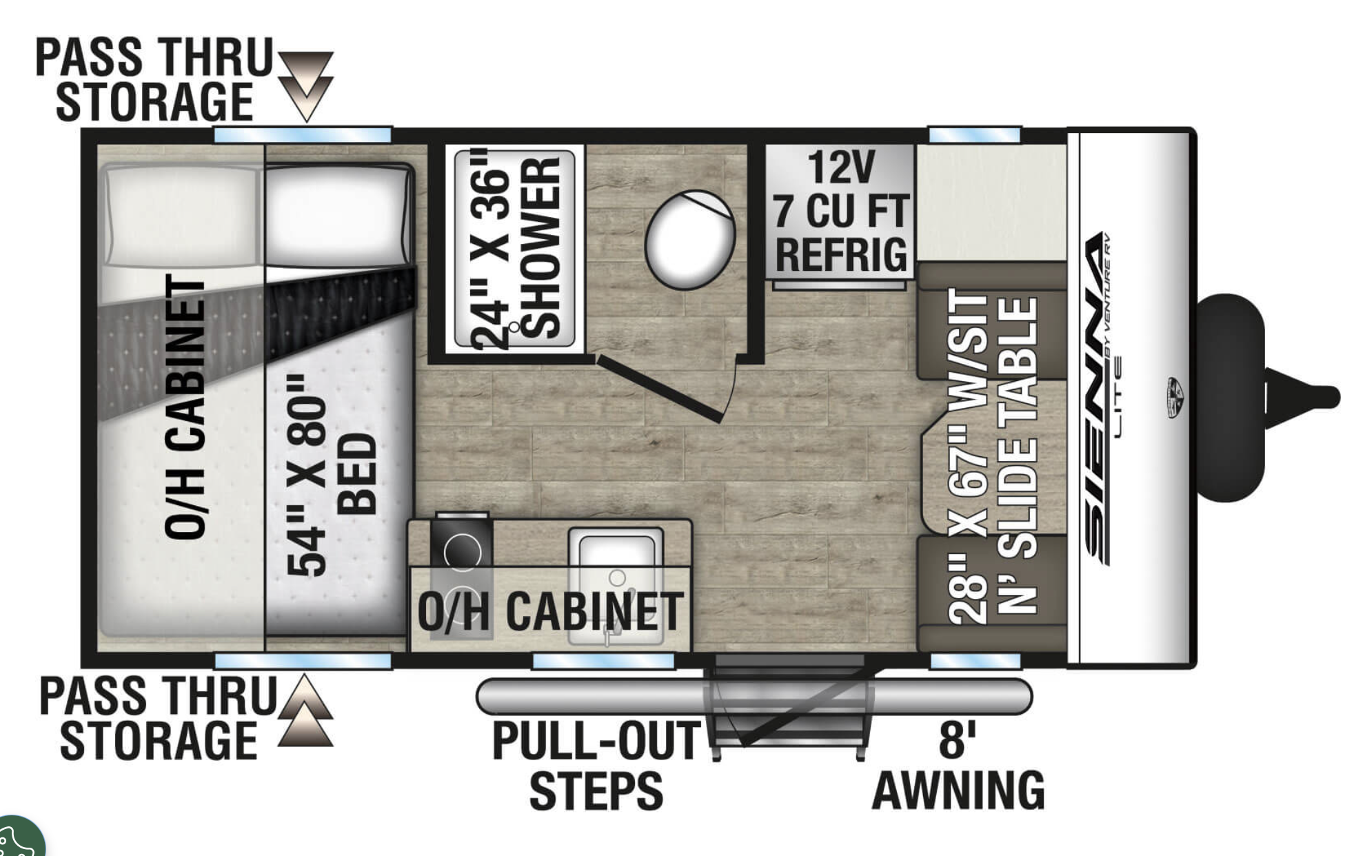Full Dry Bath: Unlike many teardrop-style trailers that use a "wet bath" (where the toilet is in the shower), the 140VFD features a 24" x 36" shower, a foot-flush toilet, and a medicine cabinet in a dedicated dry space.